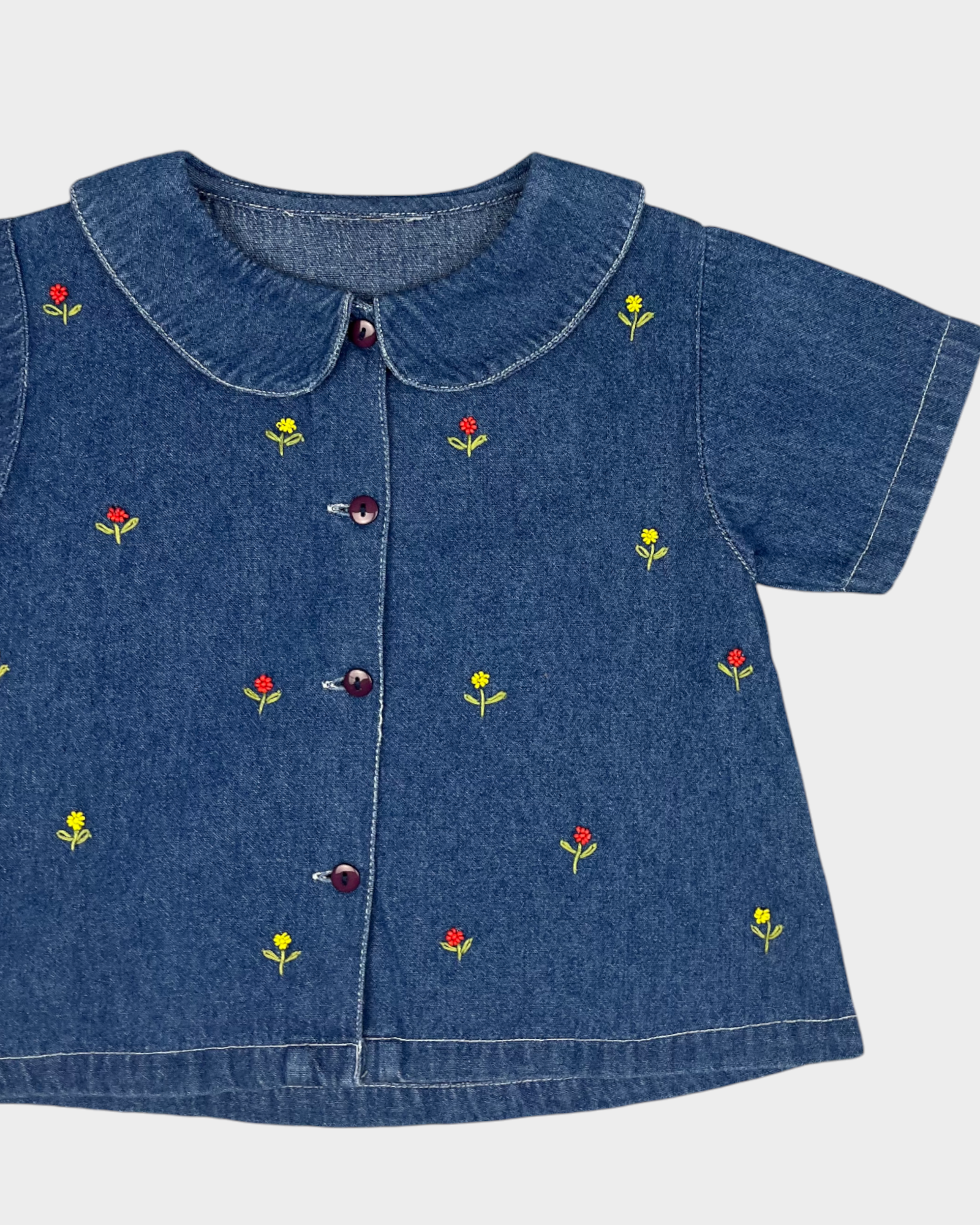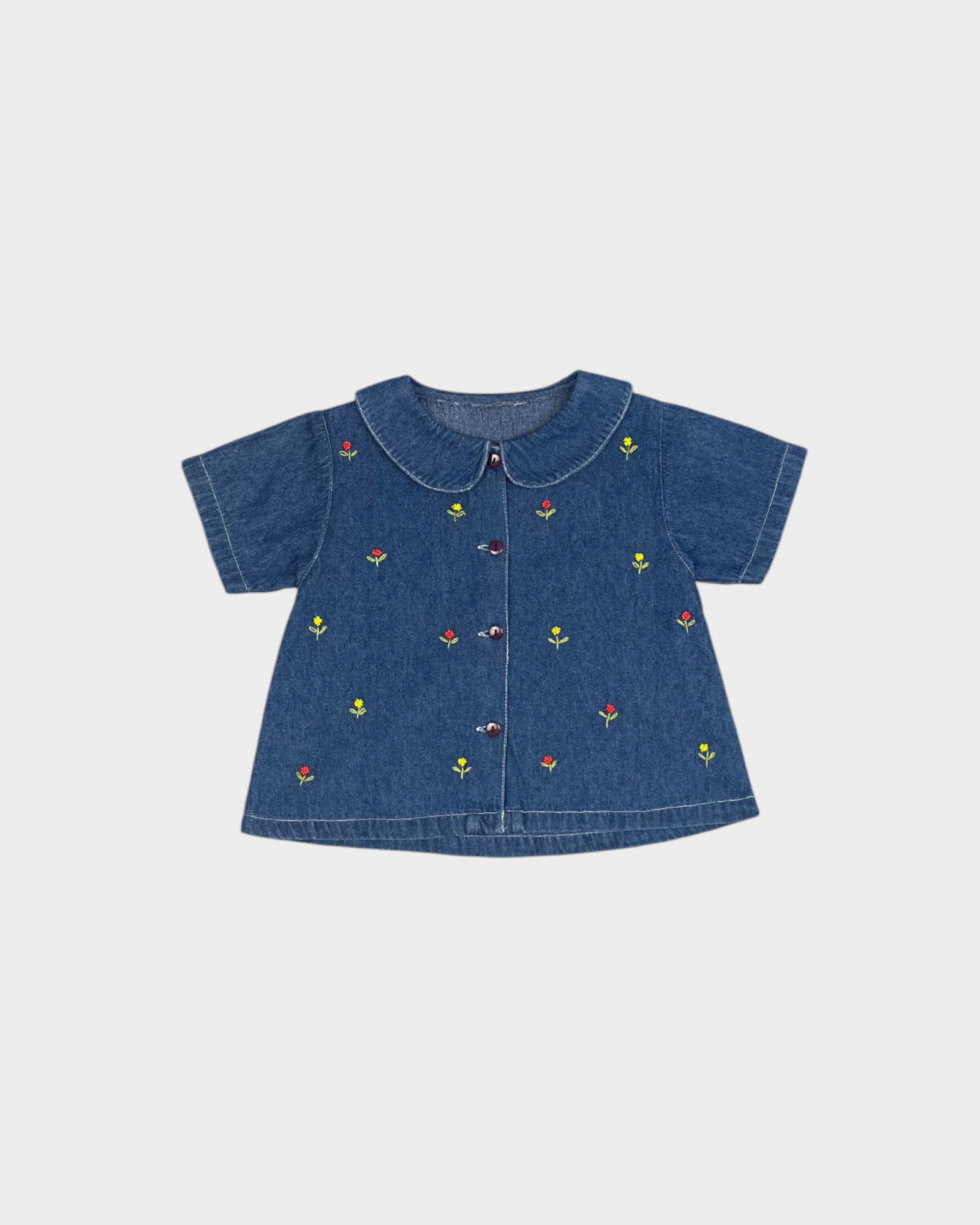 Pearl-Embroidered Denim Blouse 2Y
