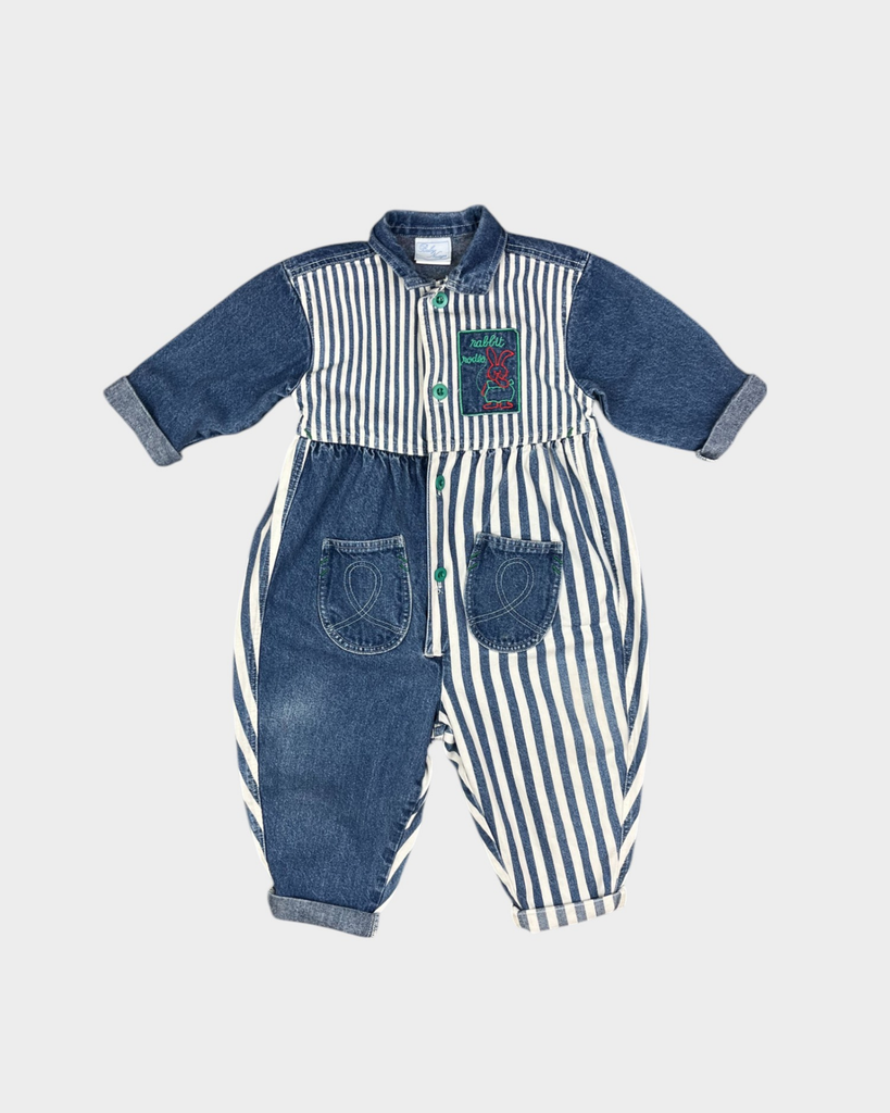 Vintage Baby Nuage Blue Stripe Denim Boilersuit 18M